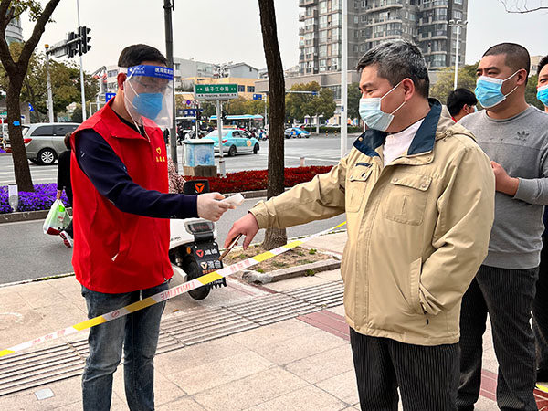 近日,揚(yáng)州新冠疫情態(tài)勢嚴(yán)峻,一線防疫壓力持續(xù)增大,人員力量緊缺?;▓@抗疫志愿者立即行動(dòng),奔赴抗疫一線,協(xié)助文匯街道開展核酸檢測等疫情防控工作。
